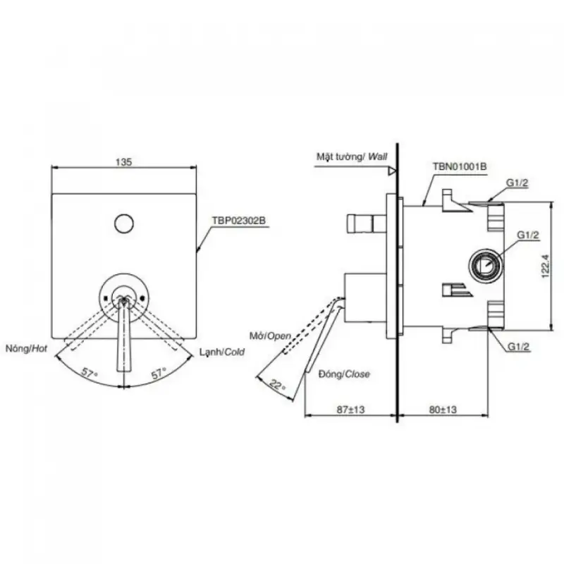 - Cần mua thêm TBN01001B: Phụ kiện âm tường.