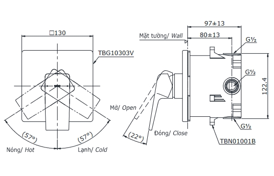 Van gật gù điều chỉnh nóng lạnh GE kèm phụ kiện âm tường