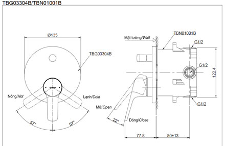 Áp lực nước: 0.05MPa ~ 0.75MPa