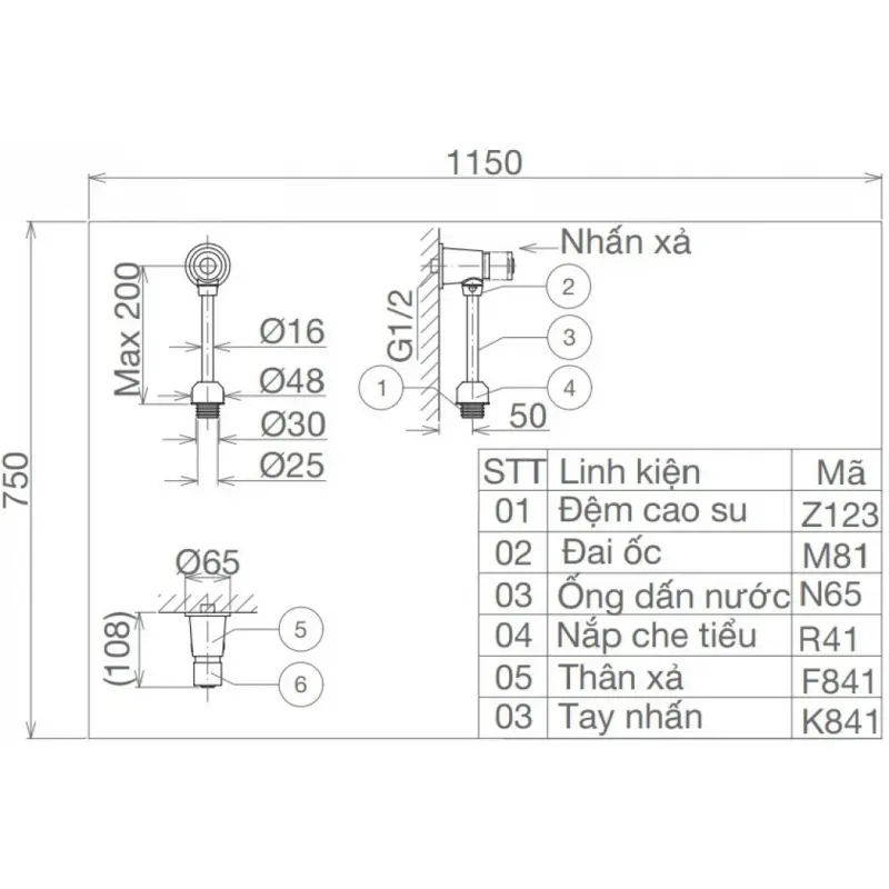 Van xả bồn tiểu nam Viglacera VG841 nhấn ống thẳng