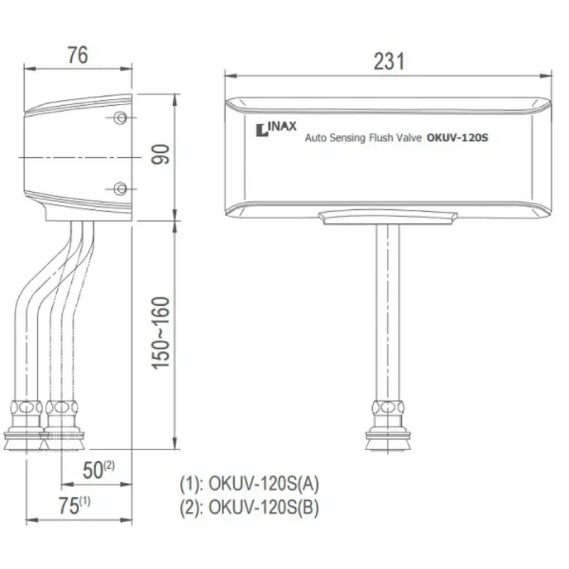 Van xả cảm ứng Inax OKUV-120S(A/B) dùng pin