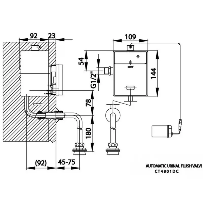 Van xả tiểu nam Cotto CT4801DC cảm ứng dùng Pin âm tường
