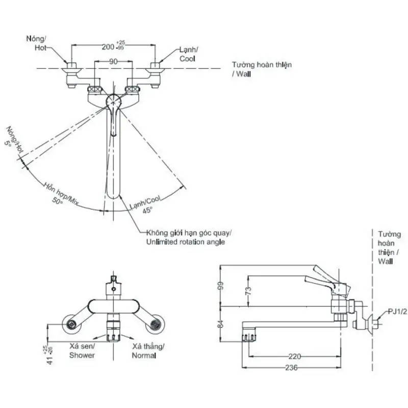 - Lắp đặt: Gắn tường.