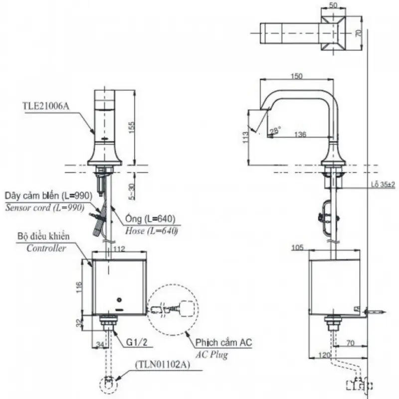 Thông Số Kỹ Thuật Chi Tiết Của Vòi Cảm Ứng Toto TLE21006V/TLE01502A1/TLN01102A: