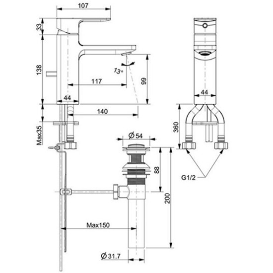 Áp lực nước: 0.05MPa ~ 0.75MPa