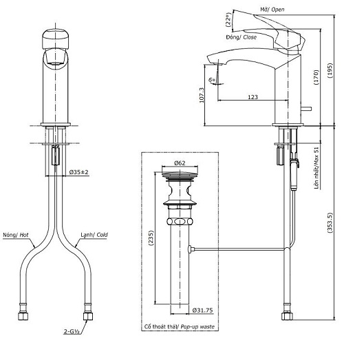 Áp lực nước: 0.05MPa ~ 0.75MPa