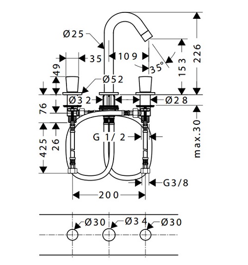Vòi chậu lavabo Hansgrohe 3 lỗ Logis 589.52.413