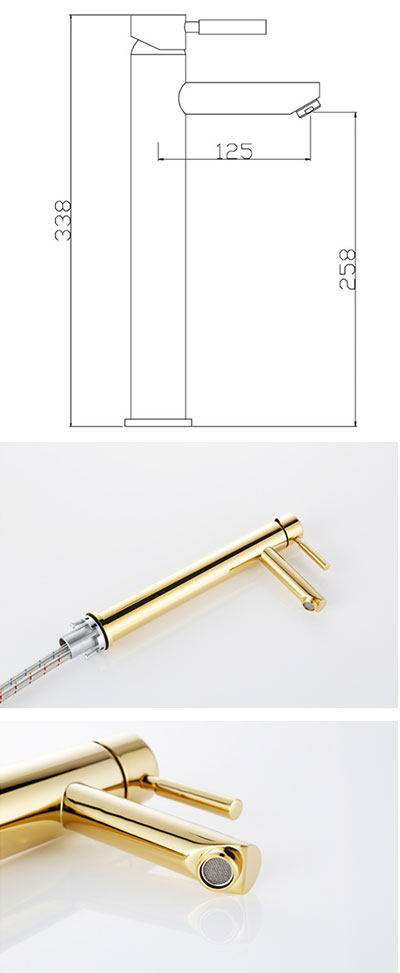 Chất liệu củ vòi: Inox 304 mạ PVD màu vàng