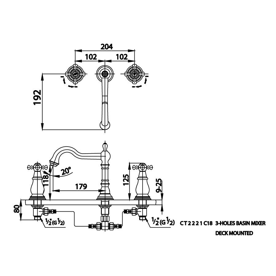Vòi chậu nóng lạnh 3 lỗ
