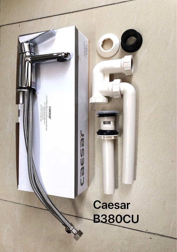 Vòi chậu lavabo nóng lạnh Caesar B380CP (Đã bao gồm xi phông cần giật)