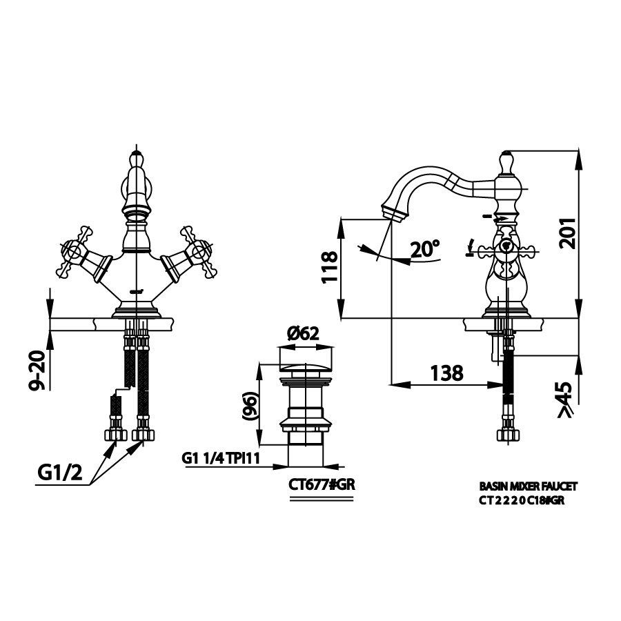 Vòi chậu lavabo nóng lạnh COTTO CT2220C18