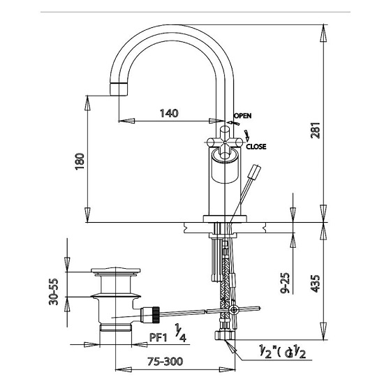 Vòi chậu lavabo nóng lạnh COTTO CT239C16 (Cổ thấp, Van vặn)
