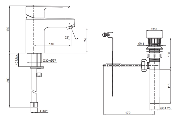 Áp lực nước: 0.05MPa ~ 0.75MPa