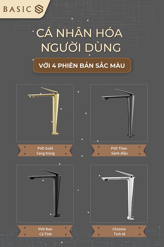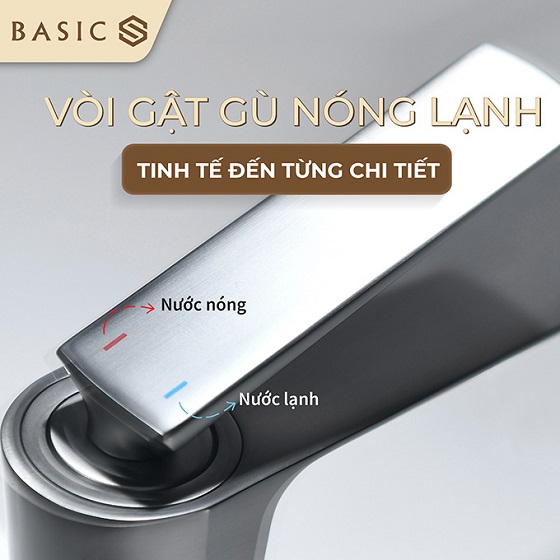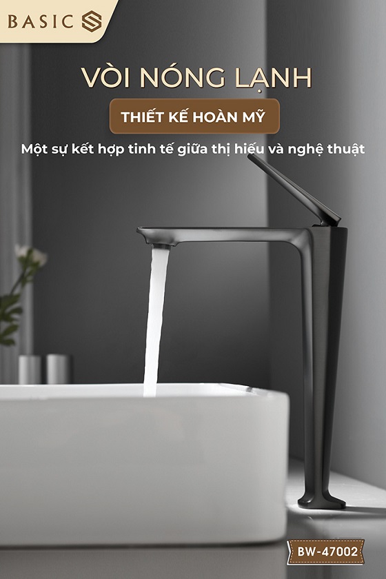 Vòi chậu lavabo nóng lạnh màu titan Basic BW-47002GM