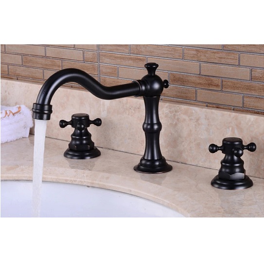 Vòi rửa mặt 3 lỗ mạ màu đen