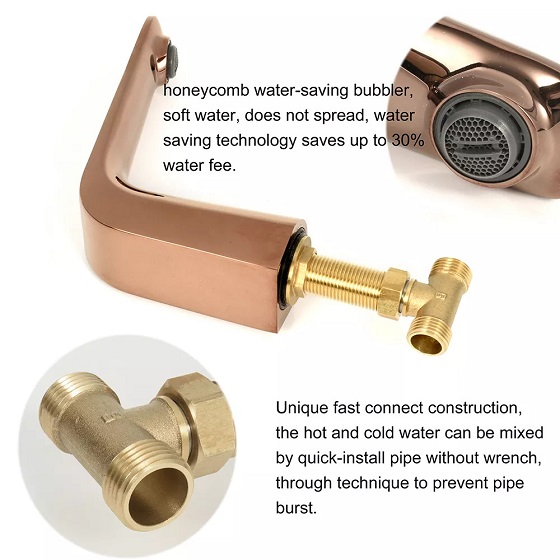 Vòi chậu lavabo, vòi bồn tắm mạ hồng vàng Rose Gold Miken WK-58454