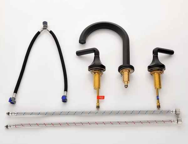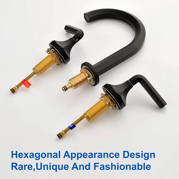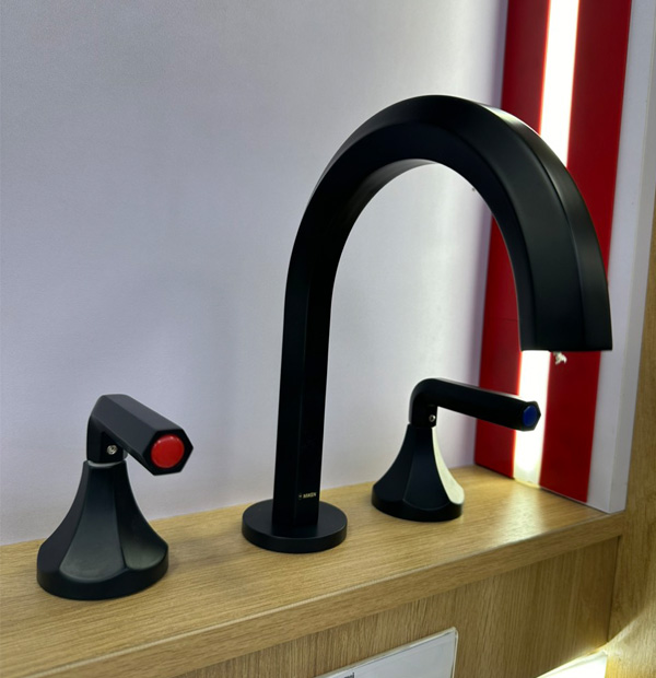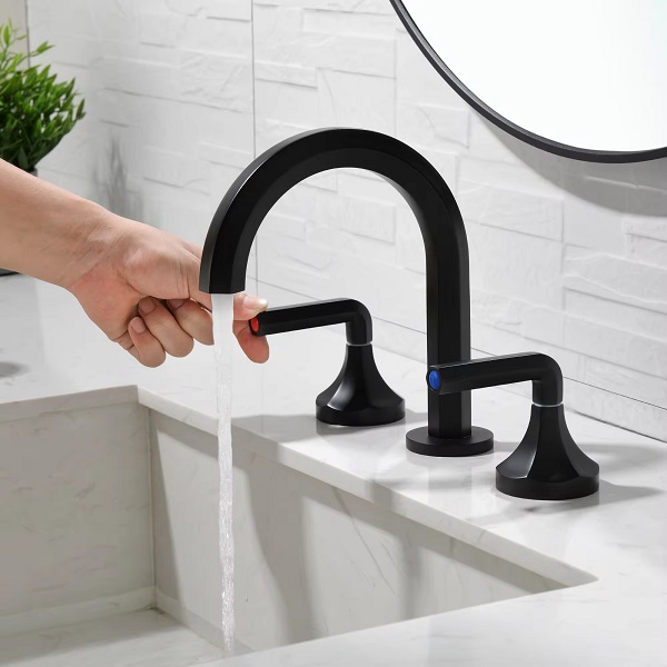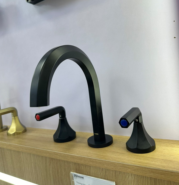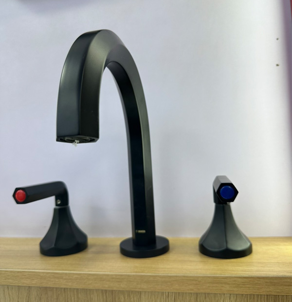 Vòi rửa mặt nóng lạnh 3 lỗ vòi cao màu đen