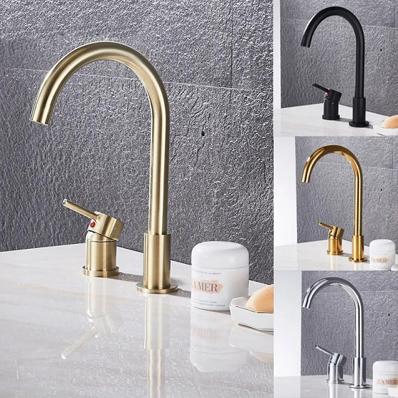 Vòi rửa mặt nóng lạnh mạ màu vàng bóng