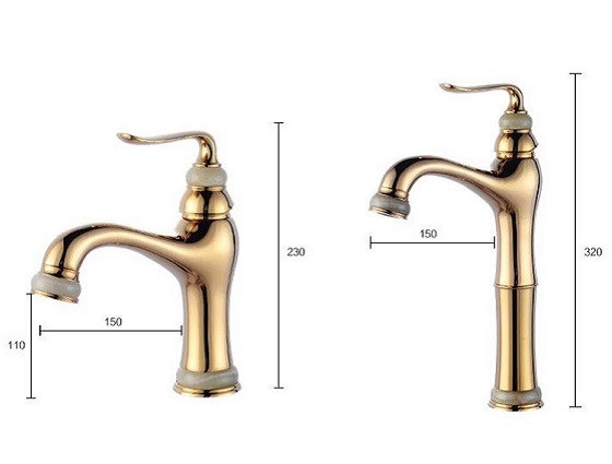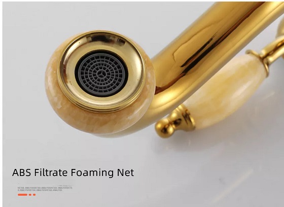 Chất liệu chủ yếu: Đồng mạ vàng đầu và chân vòi viền đá nhân tạo