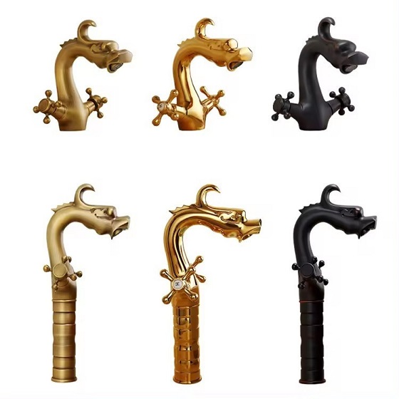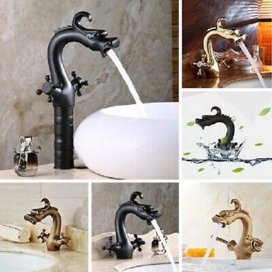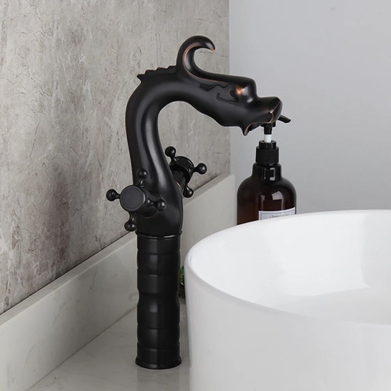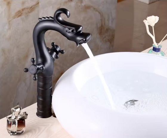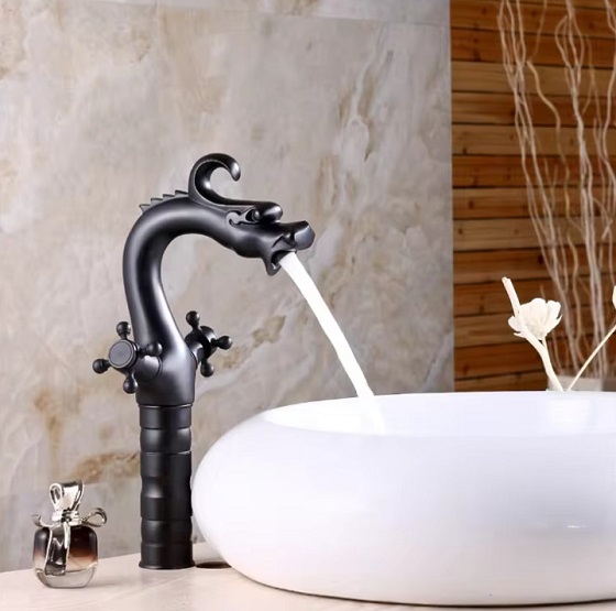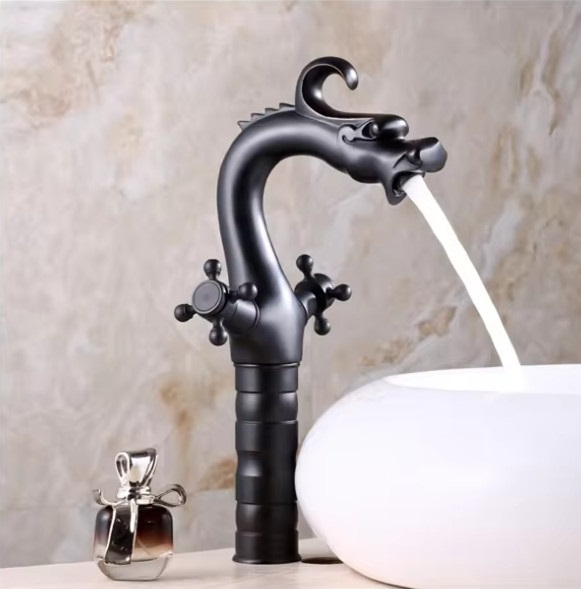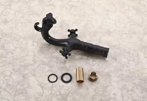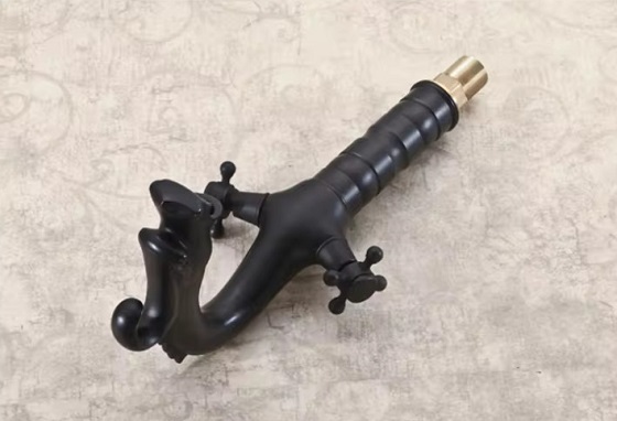 Vòi chậu rửa mặt nóng lạnh giả cổ màu đen Miken MKV-9029B