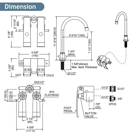 Vòi đạp chân nóng lạnh chậu rửa F-903A (Đặt hàng 10-15 ngày)