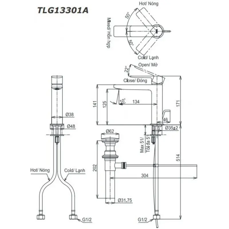 - Mọi thông số kỹ thuật vòi chậu rửa mặt Toto TLG13301A mang tính khách quan có thể có sai số của công cụ đo lường.