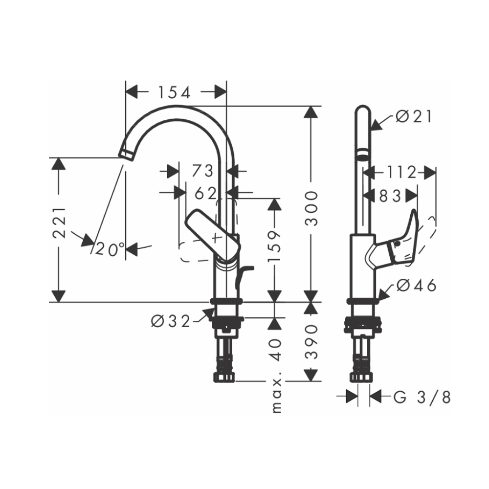 Vòi lavabo nóng lạnh Logis 210 Hansgrohe 71130000