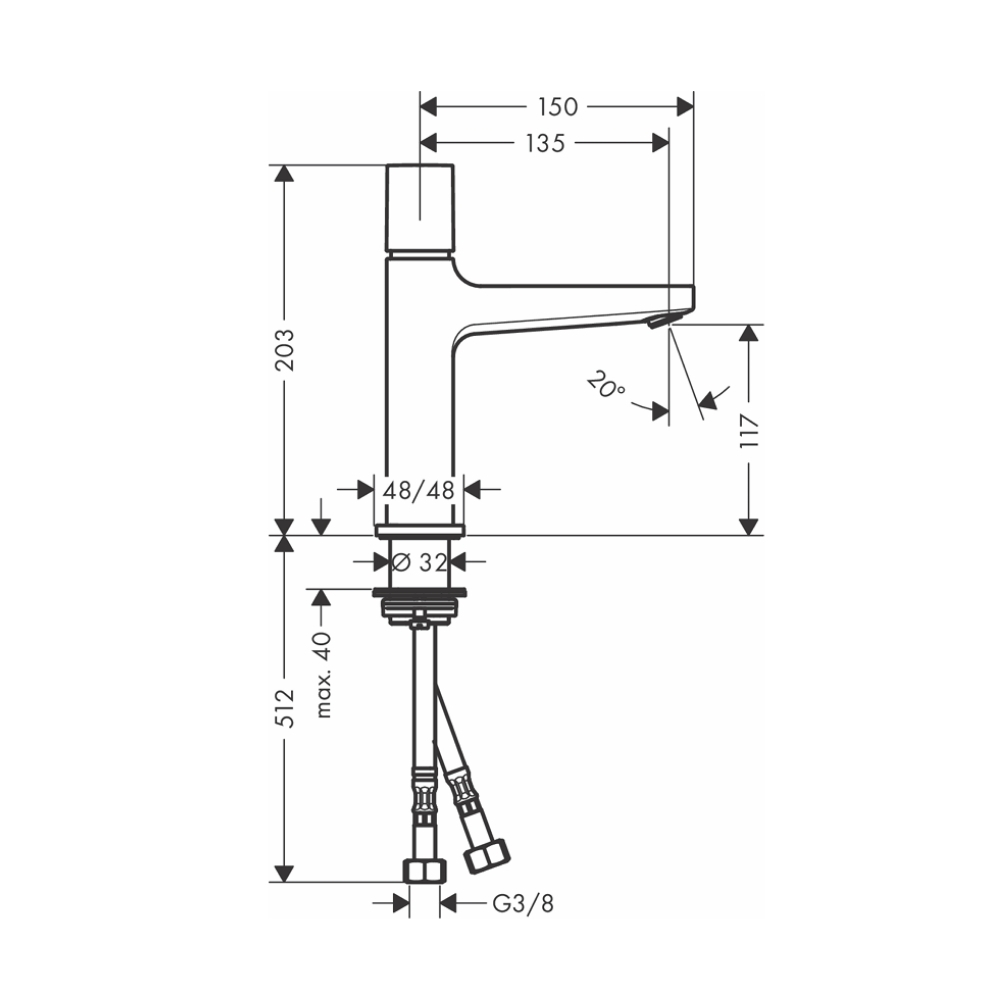 Chiều cao đầu vòi: 117 mm