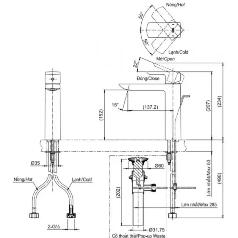 - Tối Ưu Thẩm Mỹ và Không Gian: Vòi thân cao tạo điểm nhấn kiến trúc, tôn lên vẻ đẹp nghệ thuật của chậu đặt bàn.