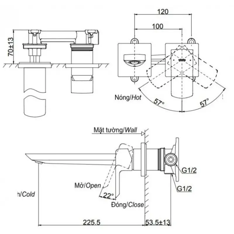 - Thiết Kế Âm Tường Tối Giản, Tạo Điểm Nhấn Kiến Trúc Độc Đáo: Toàn bộ củ, van trộn và đường ống được giấu gọn gàng bên trong tường, chỉ để lộ ra cần gạt và đầu vòi. Thiết kế này loại bỏ mọi chi tiết thừa trên mặt bàn, mang lại vẻ ngoài tối giản, hiện đại và tạo ra một điểm nhấn kiến trúc tinh tế cho khu vực chậu rửa.