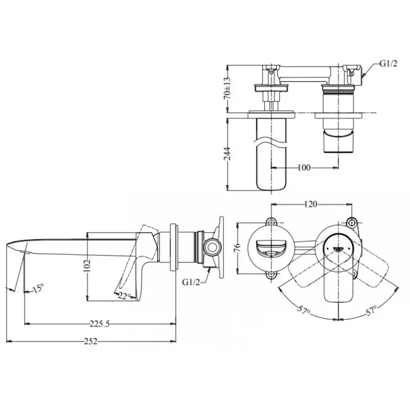 - Thiết Kế Âm Tường Tối Giản, Tạo Điểm Nhấn Kiến Trúc Độc Đáo: Toàn bộ củ, van trộn và đường ống được giấu gọn gàng bên trong tường, chỉ để lộ ra cần gạt và đầu vòi. Thiết kế này loại bỏ mọi chi tiết thừa trên mặt bàn, mang lại vẻ ngoài tối giản, hiện đại và tạo ra một điểm nhấn kiến trúc tinh tế cho khu vực chậu rửa.