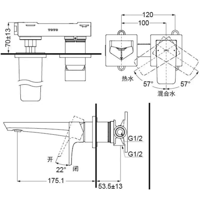 Vòi lavabo Toto TLG07307BB nóng lạnh âm tường