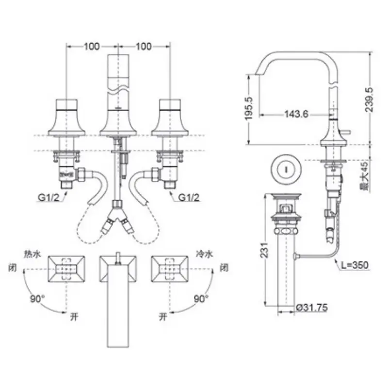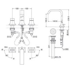 Vòi lavabo Toto TLG08201B nóng lạnh 3 lỗ