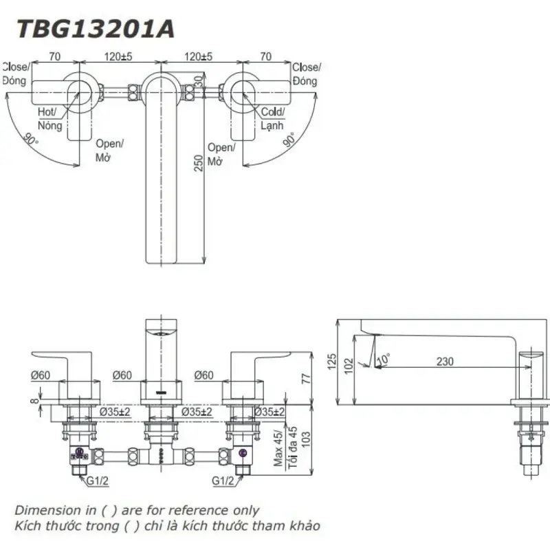 - Mọi thông số kỹ thuật vòi chậu rửa mặt 3 Lỗ TLG13201A mang tính khách quan có thể có sai số của công cụ đo lường.