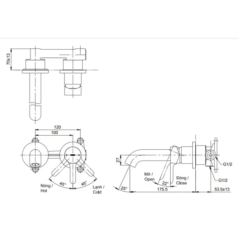 Vòi lavabo Toto TLS01309B nóng lạnh âm tường