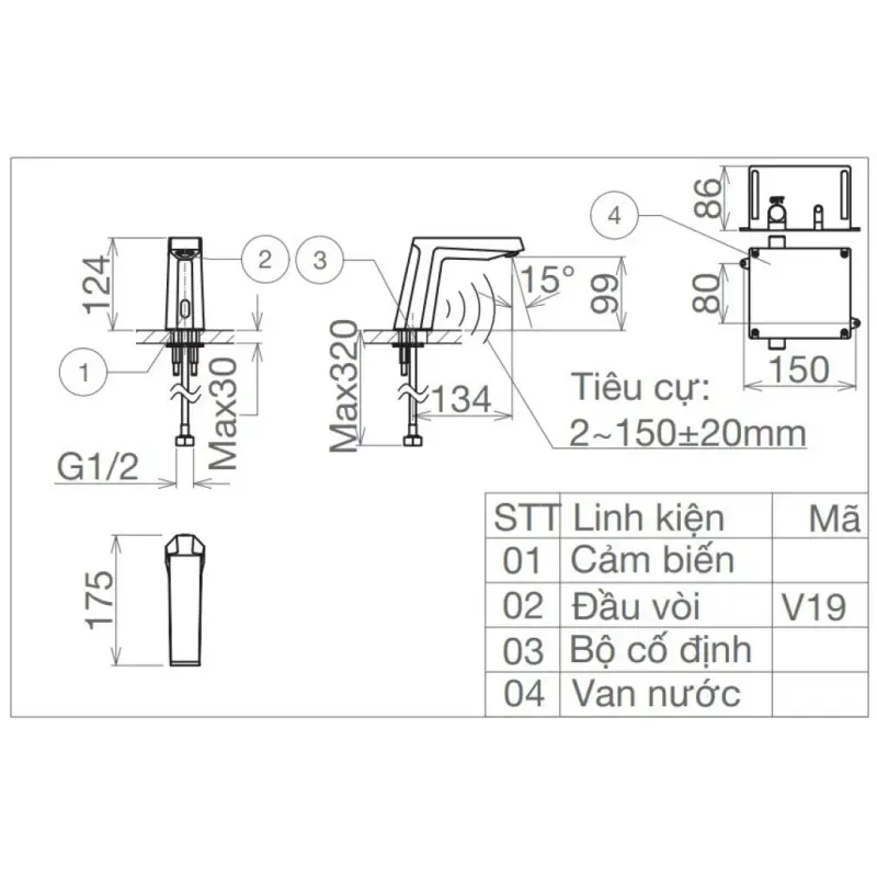 Thông Số Kỹ Thuật Chi Tiết Của Vòi Lavabo Viglacera VG1028 Cảm Ứng Pin: