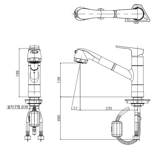 Vòi bếp nóng lạnh gắn chậu, dây rút