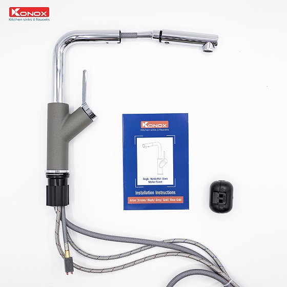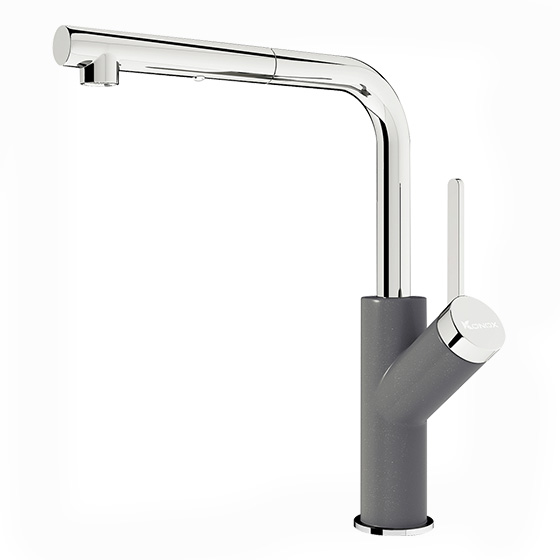 Vòi rửa bát nóng lạnh dây rút Konox Artan Grey