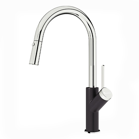 Chức năng: Nóng lạnh + Rút dây + Đầu vòi khớp xoay + 2 chức năng Sprayer (Dòng chảy thắt eo, tạo bọt khí) + Xoay 360 độ