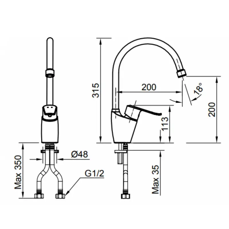 - Vệ sinh bếp dễ dàng: Thiết kế cổ ngỗng cứng có khả năng xoay linh hoạt, giúp dễ dàng chuyển hướng dòng nước qua lại giữa hai bồn rửa (nếu sử dụng chậu đôi).