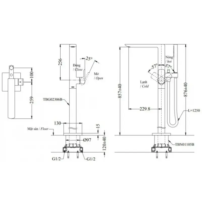 - Không bao gồm đế âm sàn TBN01105B.
