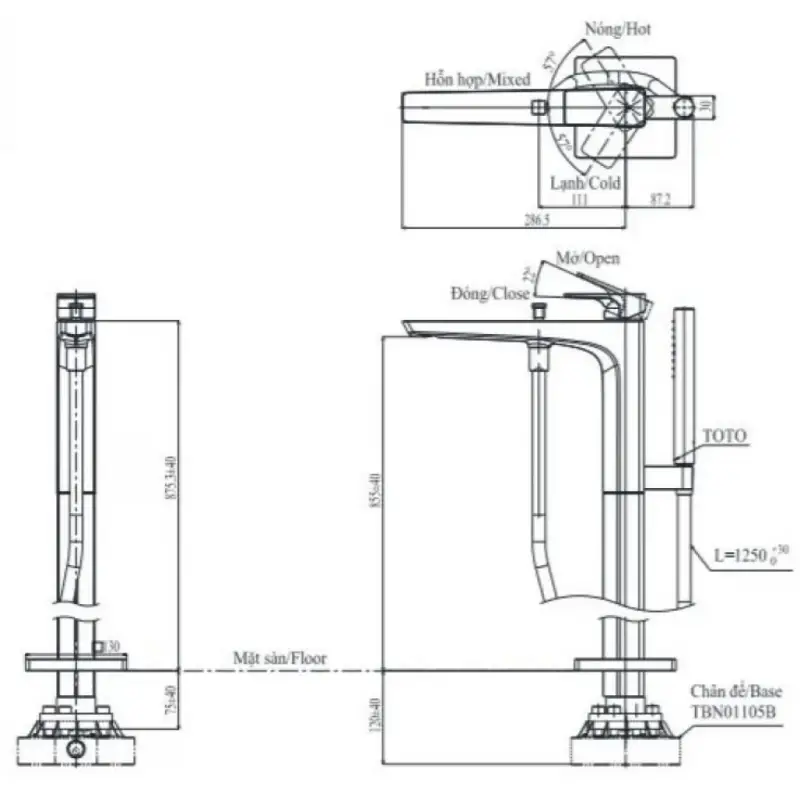 Thông Số Kỹ Thuật Chi Tiết Của Vòi Sen Bồn Tắm Toto TBG07306AA#MBL: