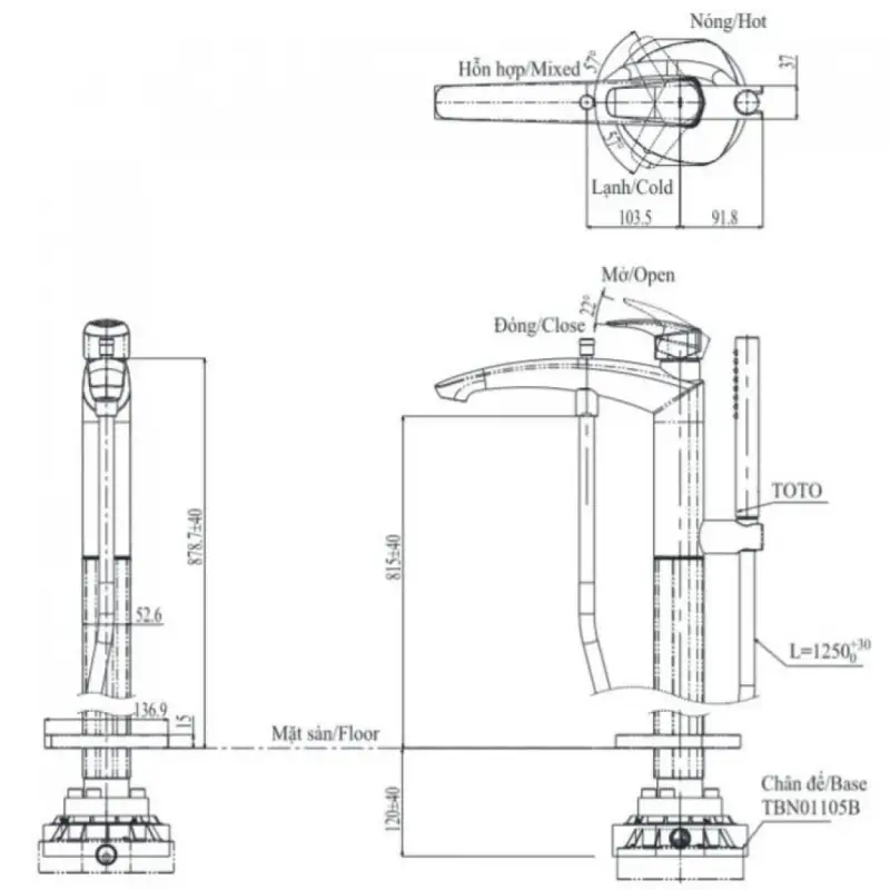 - Không bao gồm đế âm sàn TBN01105B.