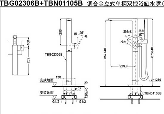 Vòi xả bồn nóng lạnh kèm sen tắm GR (loại đặt sàn)