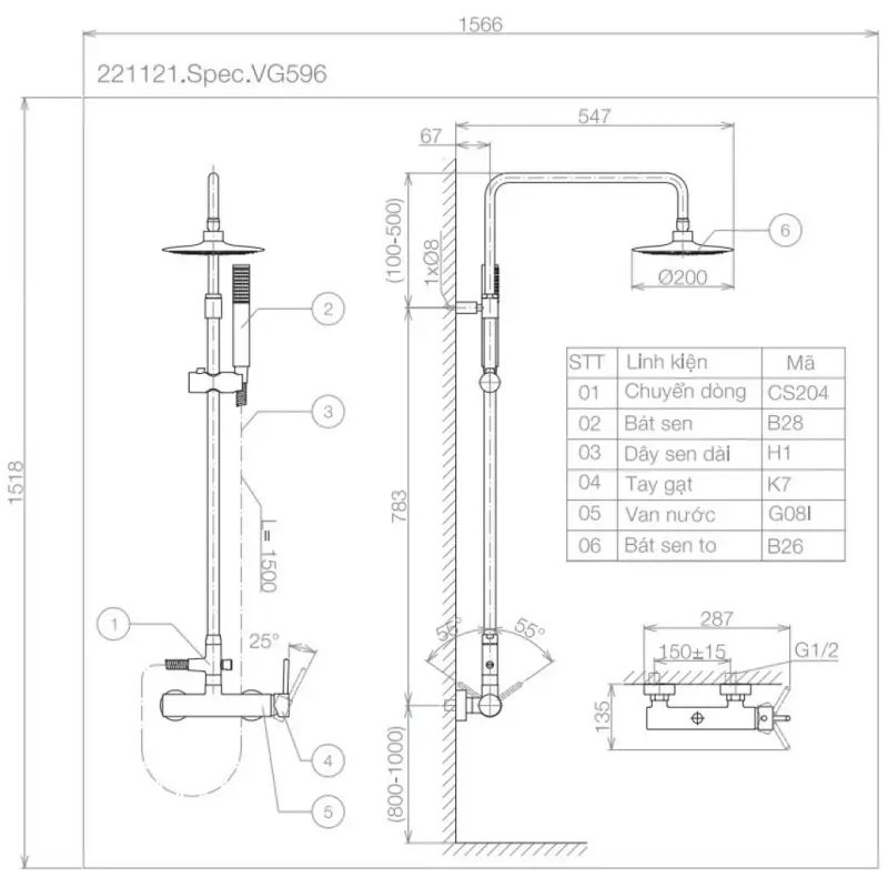 Vòi sen cây Viglacera VG596 nóng lạnh