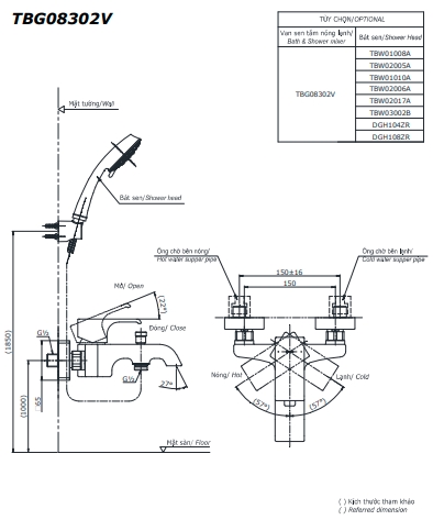 Lưu ý: Bao gồm gác sen (code cũ: TBG07302V)
