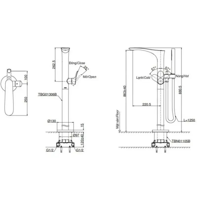 Thông Số Kỹ Thuật Chi Tiết Của Vòi Sen Xả Bồn Tắm Toto TBG01306BA#BFG/TBN01105B: