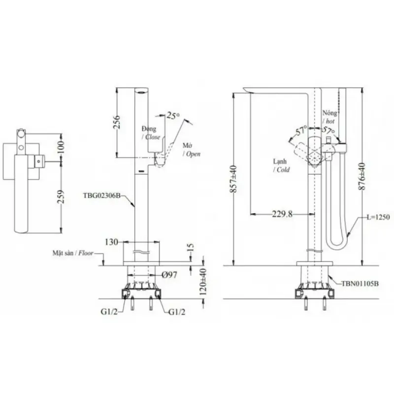 Thông Số Kỹ Thuật Chi Tiết Của Vòi Sen Xả Bồn Tắm Toto TBG02306BA#BFG/TBN01105B: