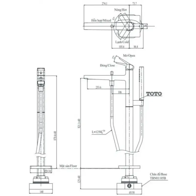 Thông Số Kỹ Thuật Chi Tiết Của Vòi Sen Xả Bồn Tắm Toto TBG10306AA#MBL/TBN01105B: