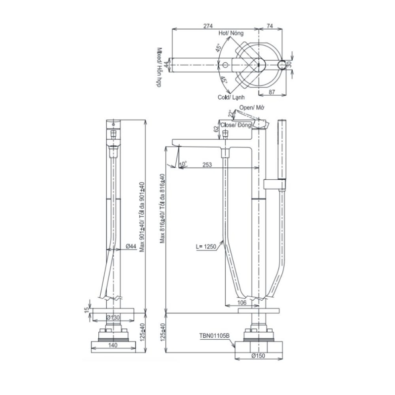 - Thiết kế độc lập đầy kiêu hãnh: Khác biệt hoàn toàn với các loại vòi gắn tường hay gắn bồn, vòi đặt sàn TOTO sở hữu thân trụ cao vút mọc lên từ sàn nhà, cho phép bạn tự do bố trí bồn tắm ở bất kỳ vị trí nào (giữa phòng, cạnh cửa sổ kính…) mà không phụ thuộc vào bức tường.